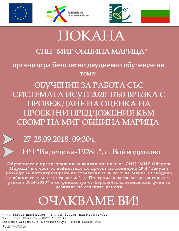 Покана за двудневно обучение – 27-28.09.2018г.