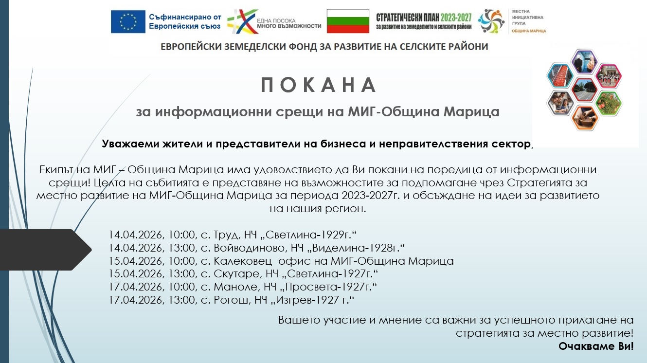 - МО1 Проучвания и инвестиции, свързани с поддържане, възстановяване и на културното и природното наследство на селата.